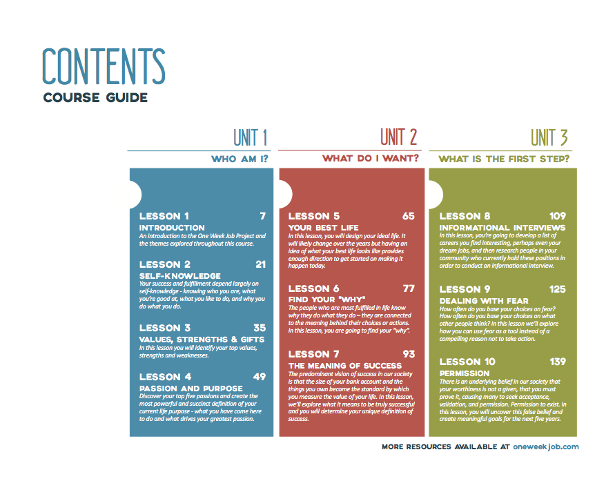 Learn more at: www.oneweekjob.com/curriculum